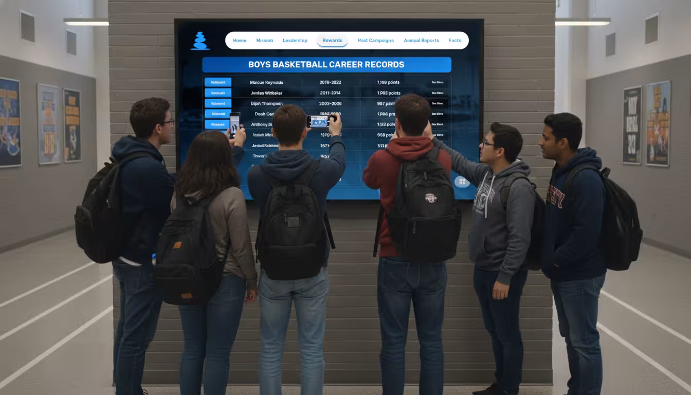 Show dynamic records with modern touchscreen displays that impress viewers and honor achievement. Your institution's history deserves more than static record boards in your gym. Touchstone Digital Solutions delivers beautifully organized, searchable digital record boards that update instantly and grow with your achievements.